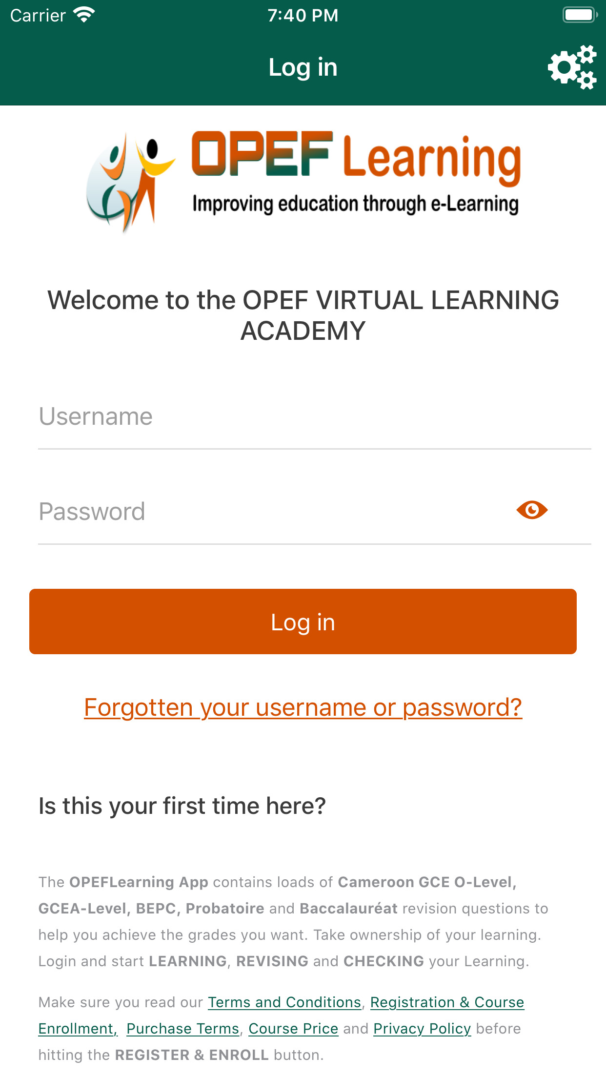 Custom UI with OPEF Learning’s colours, fonts, and branding elements.